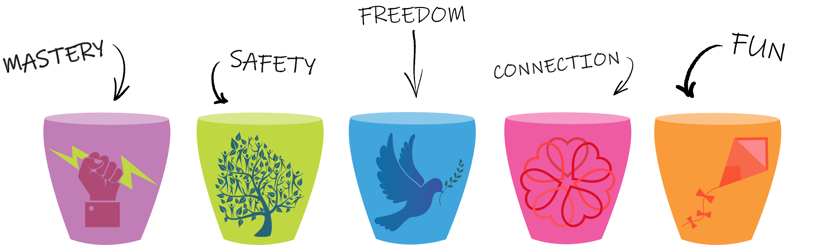 At The Phoenix Cups, we have created a framework to help you achieve what we call Life Needs Balance. Understanding why people behave the way they do can be explained simply by using an analogy about Cups. As humans, we are all motivated to choose behaviours to meet our needs. In fact, it has been argued that every single behaviour we do is to meet one of our basic human life needs. Imagine these life needs as five different sized Cups; your Safety Cup, your Connection Cup, your Freedom Cup, your Mastery Cup, and your Fun Cup.